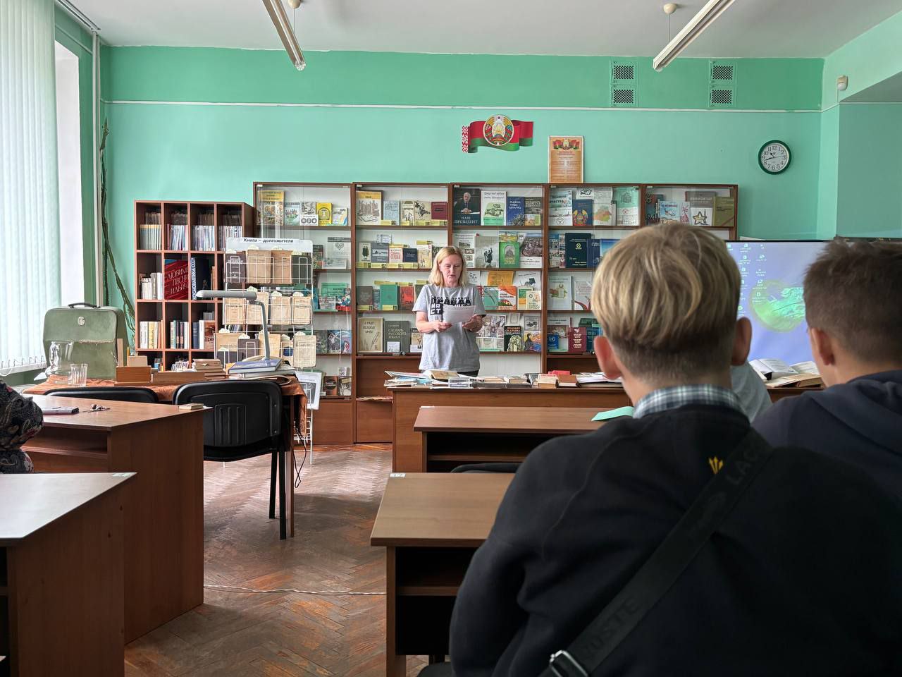 Библиотекари представили презентации о современных, о самых больших библиотеках, рассказали о Национальной библиотеке Беларуси, о носителях информации, познакомили с нашей библиотекой.
