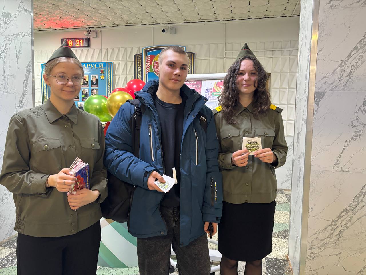 С самого утра под веселые аккорды музыки всех мужчин встречали теплыми словами поздравлений, дарили праздничные открытки и сладкие презенты с пожеланиями.